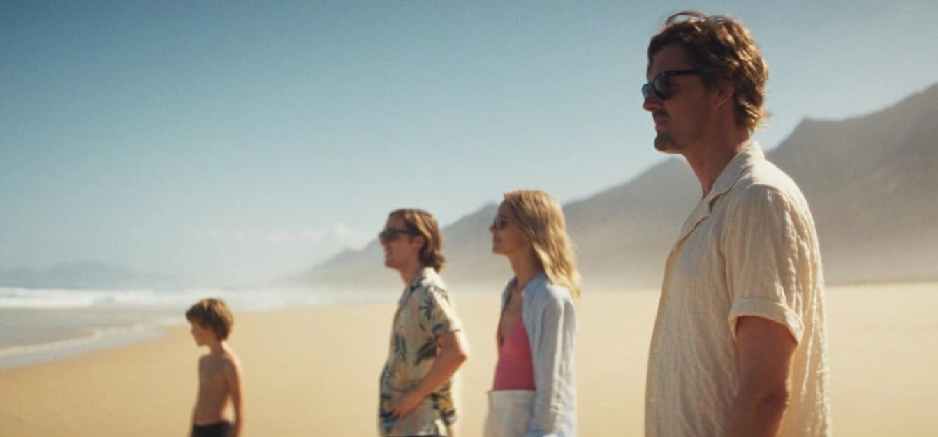 Dave’in karısıyla tartışıp iz bırakmadan ortadan kaybolması, Tom’u Anne’nin tuhaf davranışlarının peşine düşmeye itiyor. Stacy Martin’in Anne’i, kırılgan bir gülümsemenin ardında saklanan karmaşık bir ruhu canlandırırken, Sam Riley’ın Tom’u giderek büyüyen şüphelerini ustalıkla yansıtıyor. Jack Farthing’in Dave’i ise gizemini koruyan bir hayalet gibi; Dylan Torrell’in masum Anton’u ise hikayeye duygusal bir çapa atıyor. Gerster’in yönetmenliği, bu dörtlüyü adanın ıssız koylarında bir gerilim ağına örüyor – komedi unsurları, beklenmedik kahkahalarla gerilimi yumuşatırken, her gölge bir sır fısıldıyor. Bu aile, turist klişesini paramparça ederek filmi benzersiz kılıyor.