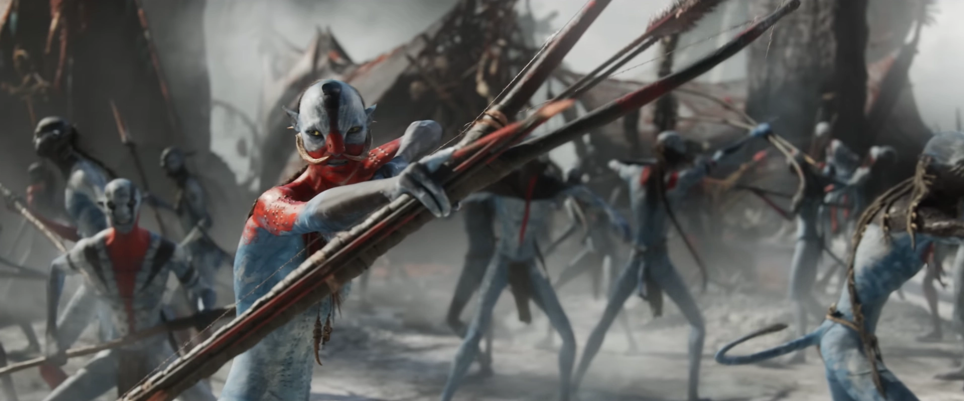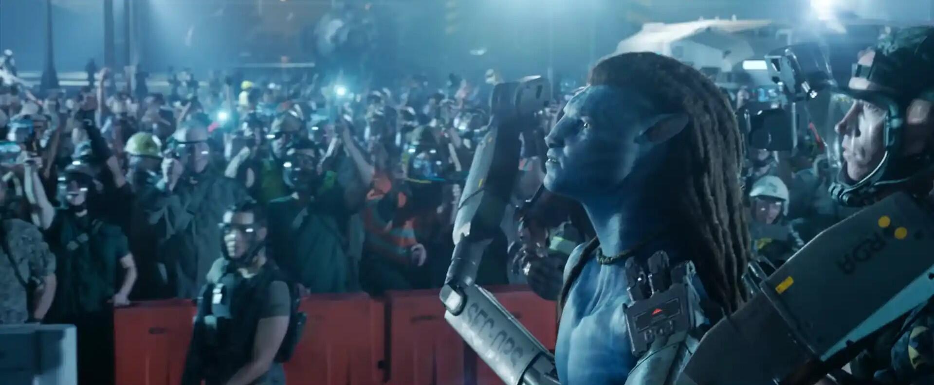 - Jake Sully ve Neytiri‘yi ekipmanları ile yürürken görüyoruz ve arkalarında da ikranlarına binmiş başka Na’vileri görüyoruz. Tahminlere göre karakterlerimiz kendi topraklarına geri dönmüş ve insanlar ile Mangkwan Klanı‘na karşı gerçekleşecek olan savaşa hazırlık yapıyorlar. Ardından havada Mangkwan Klanı ile yaşanan bir hava savaşını görüyoruz. Burada ikranlar ön planda tutulmuş ve ilk filme göre daha fazla sahneye sahipler gibi gözüküyor. Neytiri‘yi ise bu savaşta sinirli bir şekilde görüyoruz.