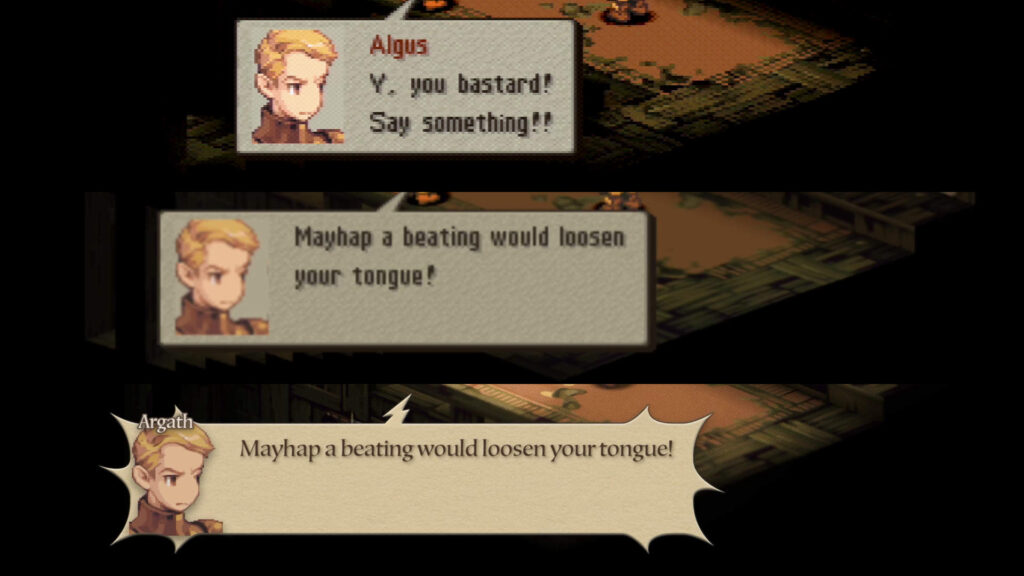 Karşılaştığım en büyük değişiklik ise, tüm karakterlere ve diyaloglara eklenen seslendirmeler oldu. Bu özellik, FINAL FANTASY TACTICS‘e ciddi anlamda bir derinlik katmış ve atmosferi daha yoğun hale getirmiş. Seslendirmelerin kalitesi de genel anlamda oldukça iyi. Ancak, bazı savaşlarda sesler ve diyaloğun fazlalığı nedeniyle, dinlerken biraz yorgunluk hissedebilirsiniz. Neyse ki, hızlandırma modu ile bu problem aşılabiliyor. Ayrıca, oyunun çevirisi de PSP sürümüne dayanıyor ve oradaki dil detaylarını yansıtır nitelikte. Bazı diyaloglar ve içerikler de yeniden elden geçirilmiş, yetişkin temalarında artış var; bunlar orijinal Japon sürümünden alınmış olsa gerek ve dikkatli olunmalı.