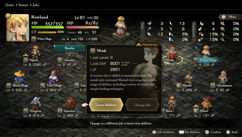 İlk kez oynayacak arkadaşlar için, FINAL FANTASY TACTICS‘in zorluk ve karakter dengeleri ilk etapta biraz zorlayıcı olabilir. Bu yüzden, başlangıçta belirli stratejik seçimler yapmak faydalı olur. Örneğin, ilk başlarda ekibinizde Knight, Monk, Black Mage ve Summoner gibi sınıflar bulundurmak işinizi kolaylaştırabilir. Ayrıca, yüksek hareket kabiliyeti ve saldırı gücü sağlayan Archer veya Ninja gibi karakterleri ilerleyen bölümlerde takıma katmak, savaşların seyrini değiştirecektir. Karakterlerin gelişimi sırasında özellikle “Job Points Up” yeteneğini ilk sıraya koymayı unutmayın; bu, yeni skill’lerin öğrenme hızını artırır. Son olarak, Wiegraf savaşında kazanan olmak için karakterlerinize Critical: Recover HP veya Auto-Potion gibi yetenekler kazandırmak, size büyük avantaj sağlar. Bu temel bilgilerle FINAL FANTASY TACTICS‘i daha kolay ve eğlenceli hale getirebilirsiniz.