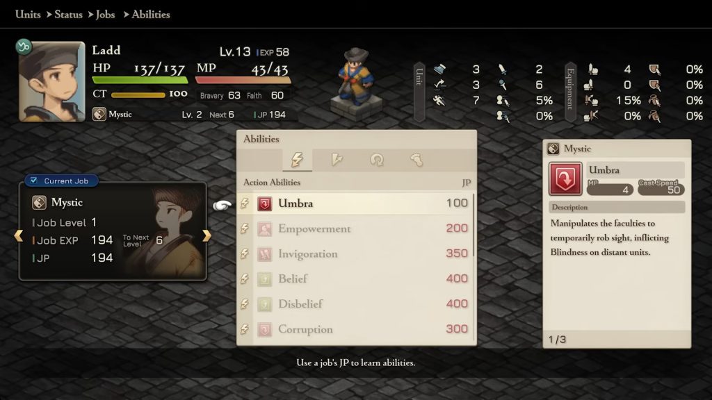 Orijinal FINAL FANTASY TACTICS‘teki karakterlerin güç dengesi devam ediyor. Örneğin, Orlandu hala oyunun en güçlü karakterlerinden biri ve oynanışa büyük katkı sağlıyor. Aynı zamanda, karakter sınıflarının sunduğu fonksiyonlar da değişmemiş. Samurai, Geomancer, Mystic gibi birkaç sınıf dışında, büyük farklar ve dengesizlikler devam ediyor. Bu denge, özellikle güçlü ve zayıf sınıfların belirgin farklarını ortaya koyuyor. Bunlar arasındaki tek fark, rastgele skill başarı oranlarını biraz daha makul seviyeye çekmiş olmaları. Mesela, isabet oranı %20 civarında olan yetenekler yerine, %60’a yakın oranlara çıkarılmış. Böylece, bu skill’leri kullanmak daha mantıklı hale geliyor. Eğer başka değişiklikler varsa bile, fark edememiş olabilirim çünkü büyük değişiklikler değil, küçük dokunuşlar söz konusu.