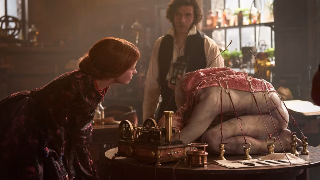 Film, Victor Frankenstein ile yarattığı varlık arasındaki bağı klasik bir “baba-oğul” metaforunun ötesine taşıyor; ilişki neredeyse kutsal bir sorguya dönüşüyor. Artık mesele Tanrı’ya öykünmek değil, Tanrı’nın sessizliğine dayanabilmek. Hayat verme kudretiyle onu sonlandırma iradesi arasındaki sınır, insanın vicdanında çatlıyor.