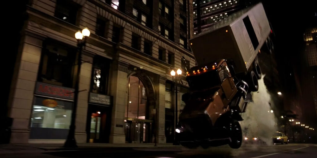 The Dark Knight‘ta Joker‘in kullandığı o devasa 18 tekerlekli tırın, Gotham’ın göbeğinde tepe taklak olduğu sahneyi hatırlıyor musunuz? İşte o sahne, bilgisayarda yapılmadı. Nolan, o tırı Chicago sokaklarında gerçekten devirdi. Yukarıdaki çizimlere baktığınızda, bu devasa mühendislik harikasının, çekimden çok önce kağıt üzerinde nasıl kare kare planlandığını görebilirsiniz.