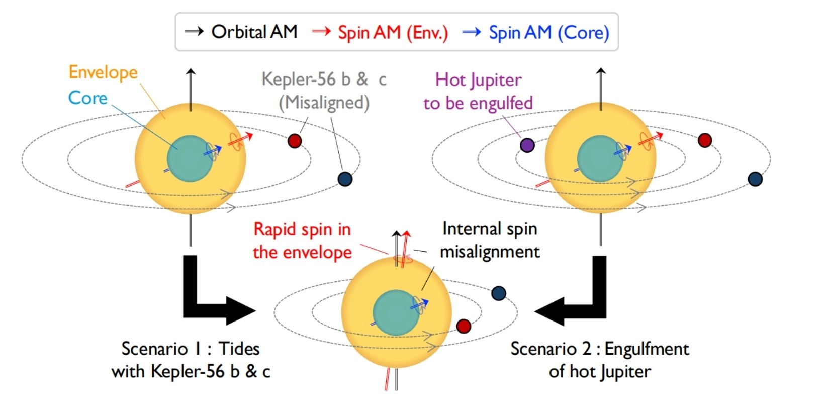 Kepler-56 örneğinde, uzmanlar sistemdeki iki bilinen ötegezegenin etkisinin yetersiz kaldığını ve yıldızın bu sıra dışı davranışlarının başka bir nedene dayandığını düşünüyorlar. Bu nedenle, araştırmacılar yeni bir senaryo geliştirdi: Yıldızın geçmişte büyük bir gezegeni “yutmuş” olması. Bu durum, yıldızın dönüş hızında belirgin bir artışa neden olabilir ve iç yapıdaki farklı hizalanmaların temel nedeni olabilir. Ayrıca, yutulan gezegenin büyüklüğü ve çarpışma açısı, yıldızın yapısında ve hareketlerinde kalıcı izler bırakabilir. Bu süreçler, yıldızın gelişim evrimini önemli ölçüde etkileyebilir ve gözlemlerle uyum sağlayabilir.