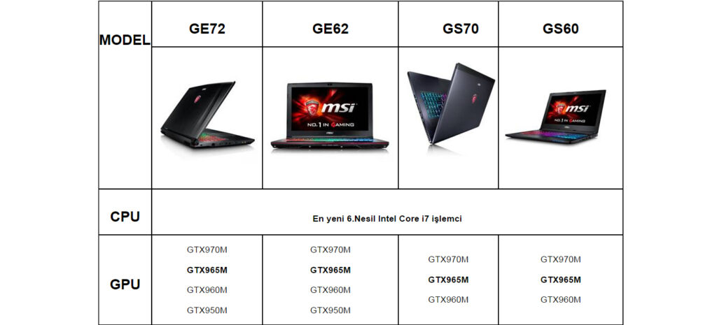 MSI Dizüstü Bilgisayar Serileri Rehberi