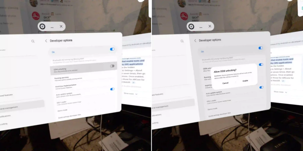 Galaxy XR gibi gelişmiş ve özellikle geliştirici odaklı cihazlarda ise bu kısıtlama genellikle farklılık gösterebiliyor. Galaxy XR’ın ilk sürüm güncellemeleriyle birlikte, bootloader kilidini açma seçeneği Geliştirici Seçenekleri’nde aktif olarak bulunuyor. Bu, cihazın fabrikada kapalı olan bu özelliğinin kullanıcıların erişimine açık tutulması anlamına geliyor. Kullanıcılar, cihaz üreticisi tarafından resmi olarak sağlanan ve çeşitli güvenlik sertifikalarına uygun şekilde sunulan bu seçeneği kullanabilirler.