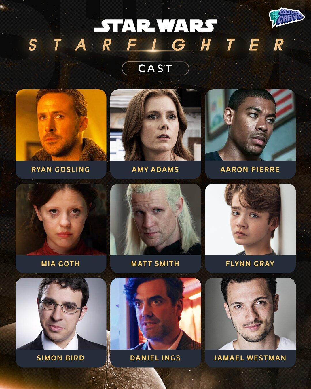 Film, etkileyici bir oyuncu seçkisiyle dikkat çekiyor. Ryan Gosling başrolde, Barbie ve La La Land’deki performanslarıyla Oscar adayı olmuş bir yıldız olarak galaksiye adım atıyor. Gosling, Star Wars Celebration Japan’da çocukluk yatağındaki Star Wars desenlerini göstererek hayranlığını dile getirmiş: