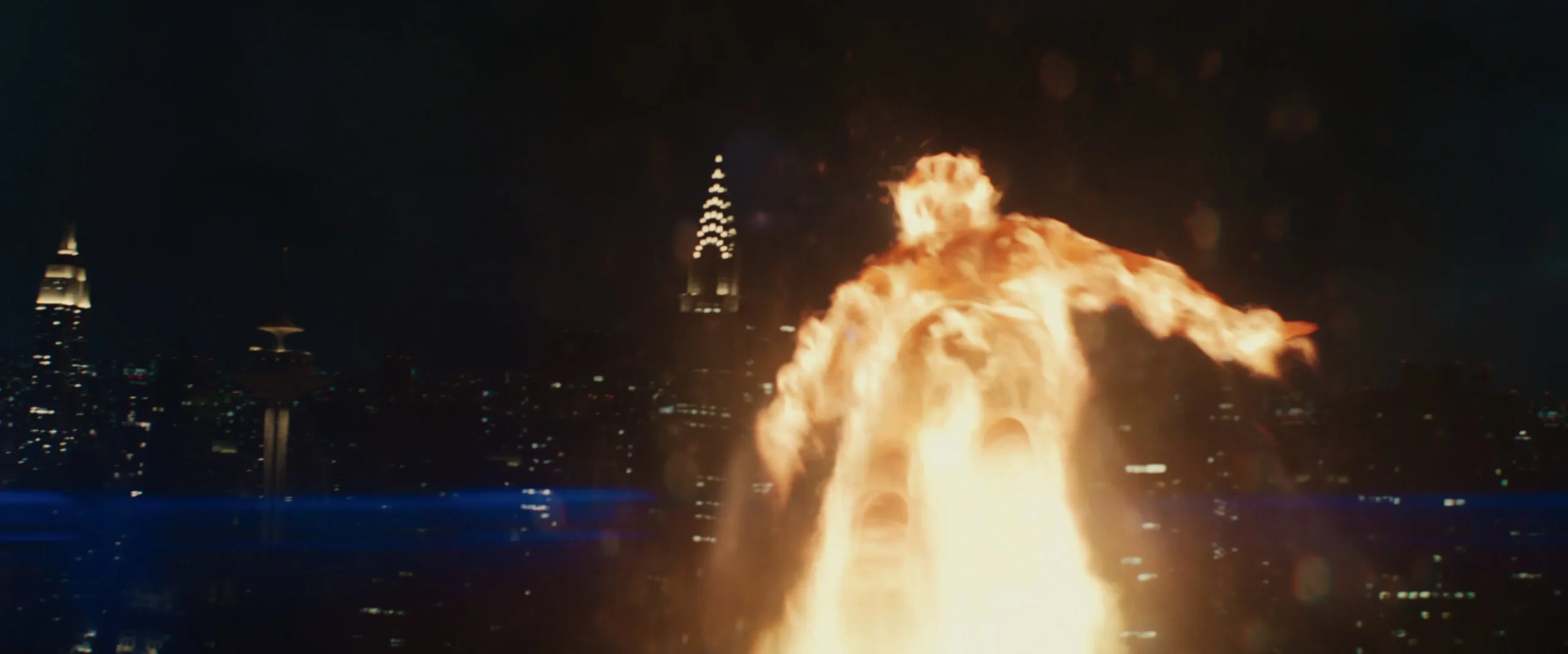 - Johnny Storm‘un güçlerini kullanarak atmosfer dışına çıkmayı denediği sahneyi görüyoruz.