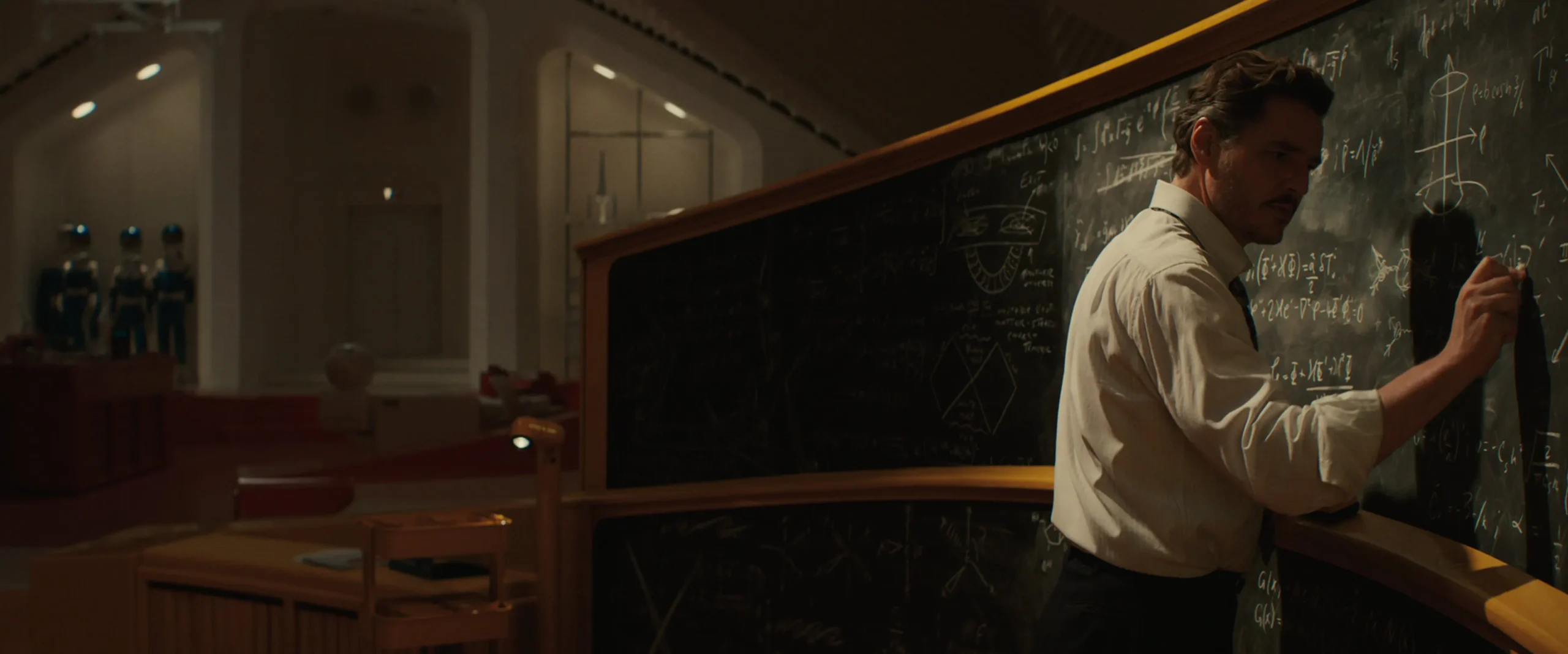 - Reed Richards‘ın tahtaya formül yazdığı sahnenin arka planında paralel evren yolculuğunu ele aldığını görüyoruz.
