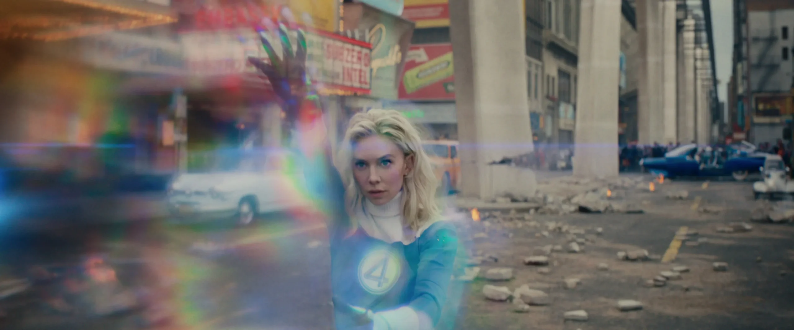 - Sue Storm‘un güçlerini kullandığı bir sahne görüyoruz. Teorilere göre ekip güçlerini kullandığı sahnede Galactus ile savaşıyor.